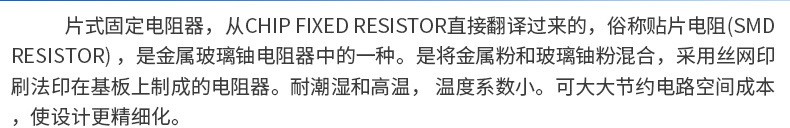 片式固定電阻器俗稱貼片電阻,是金屬玻璃鈾電阻器的一種。